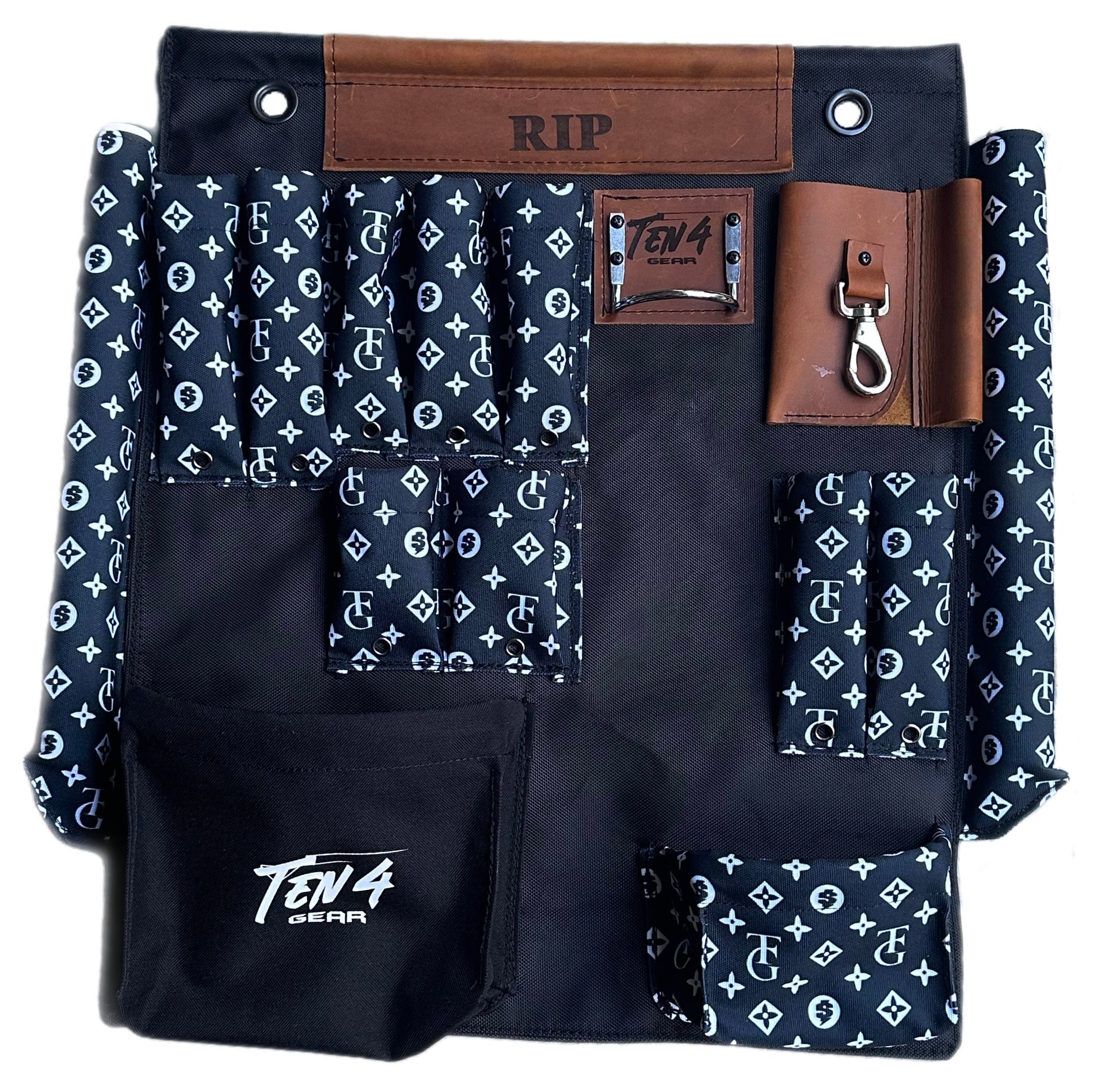 Ten4 Gear has innovatively crafted a 24 &32 inch tool apron with diverse pocket options to fit securely inside the bucket. You won’t find these anywhere else. Each apron includes a non-conductive rod for added support and two grommets. This revamped version goes above and beyond traditional tool apron standards, thanks to the input from linemen across the nation, resulting in a tailor-made tool apron for linemen. More pictures coming soon. Please feel free to browse our custom designs in the Swag Out Tab.