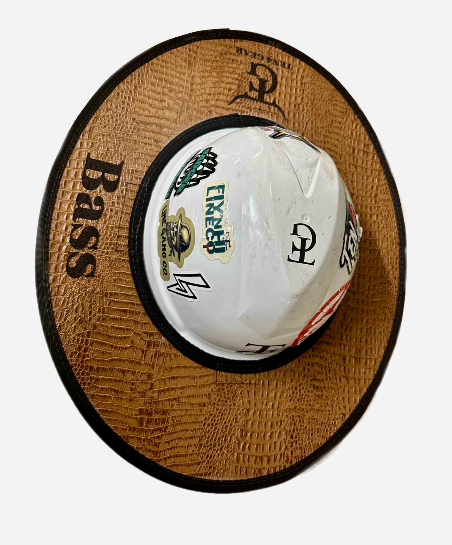 Indulge with our Low Country- Gator/ Cognac Embossed Leather Sunshade, perfect for making a statement and standing out! These are are limited, so don't hesitate to secure yours. Keep in mind not to machine wash and consider using Bickmore treatment for the best care. This product is not FR, but we provide an initial care kit for your convenience.